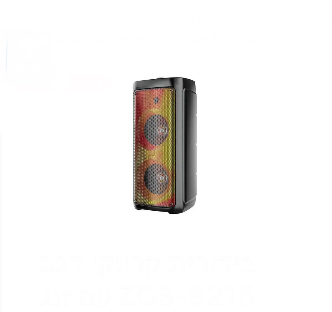 בידורית קריוקי דגם ZQS-8215 עם זוג רמקולים – כל רמקול בגודל 8 אינץ’ ובעוצמה של 20W עם מיקרופון אלחוטי
