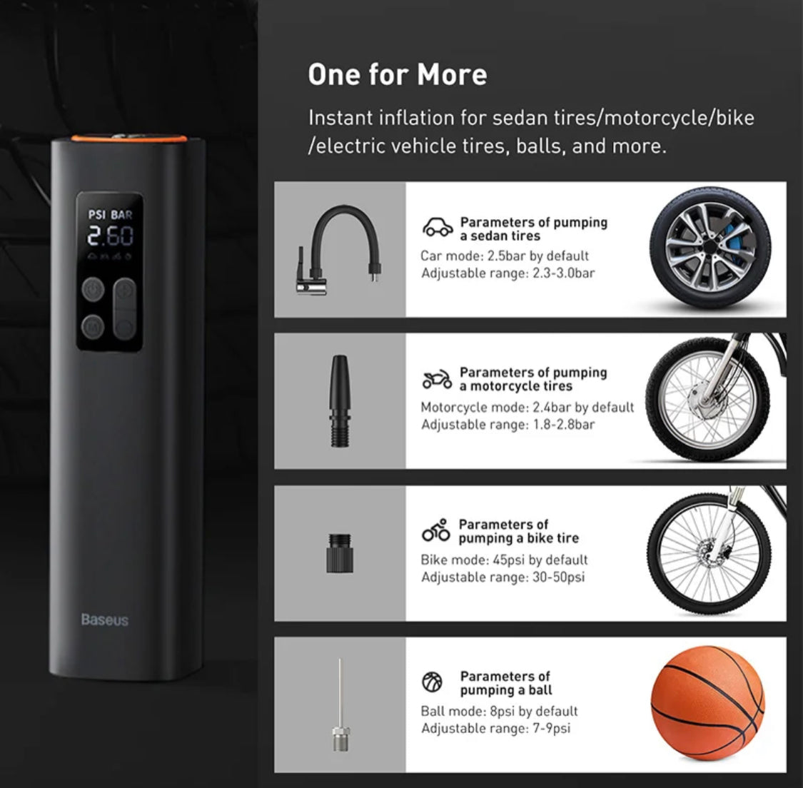 מדחס אוויר (קומפרסור ) נייד 12 וולט מתחבר למצת הרכב עם כבל ארוך של 3 מטר עד 150psi של חברת baseus