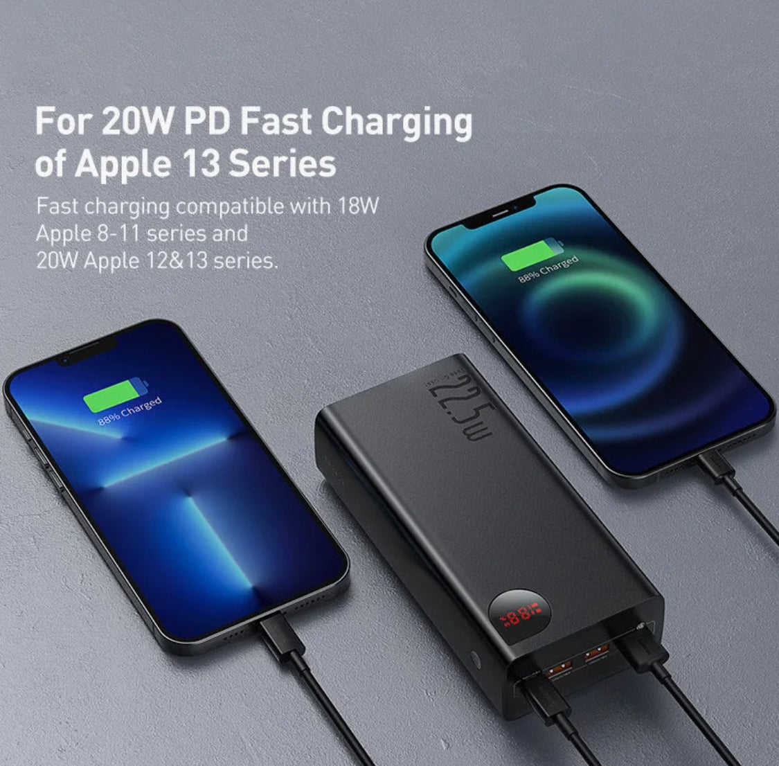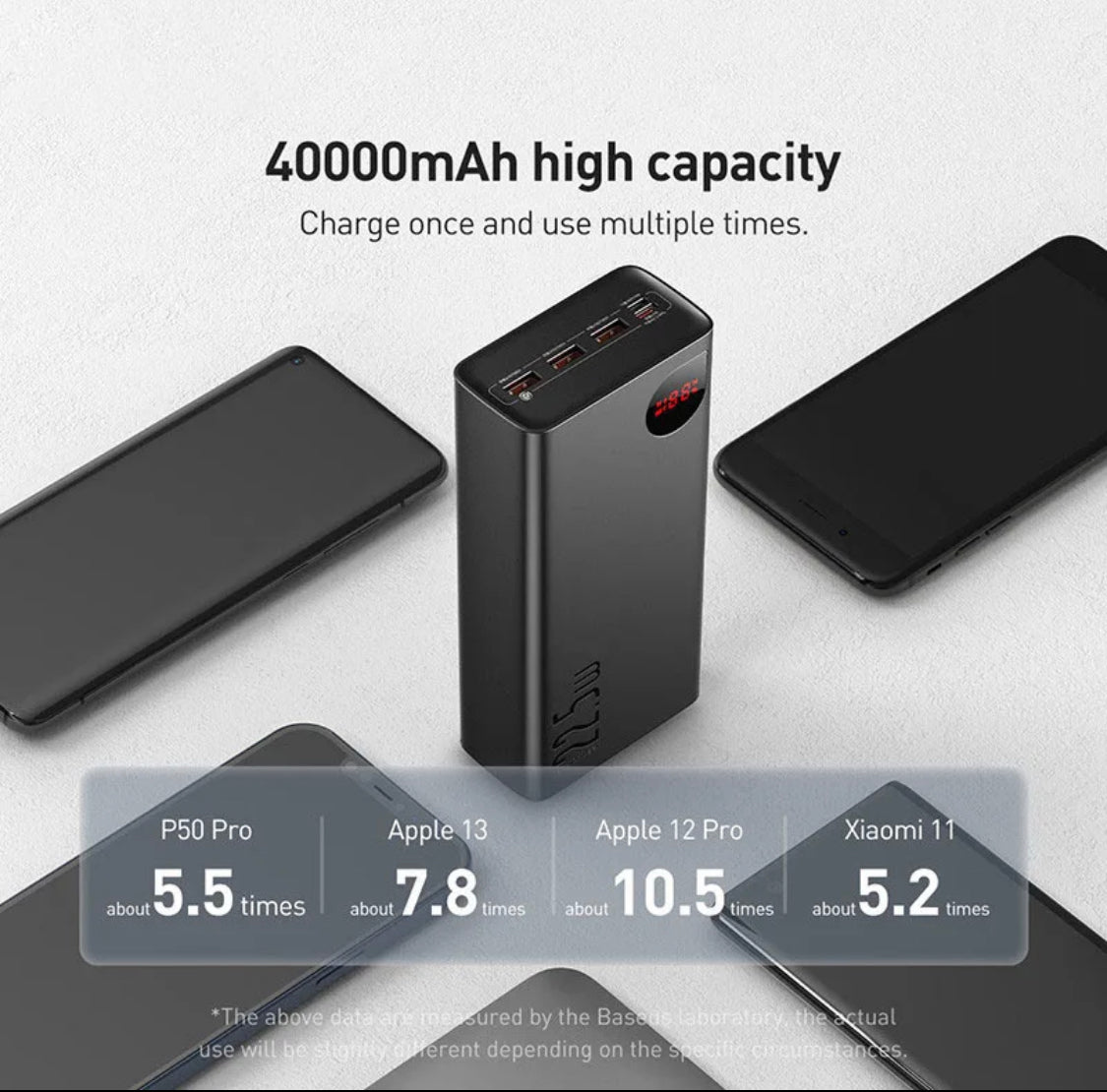 סוללת גיבוי עוצמתית ואיכותית בקיבולת של 40,000 Mha עם טעינה מהירה של 22.5W של חברת baseus