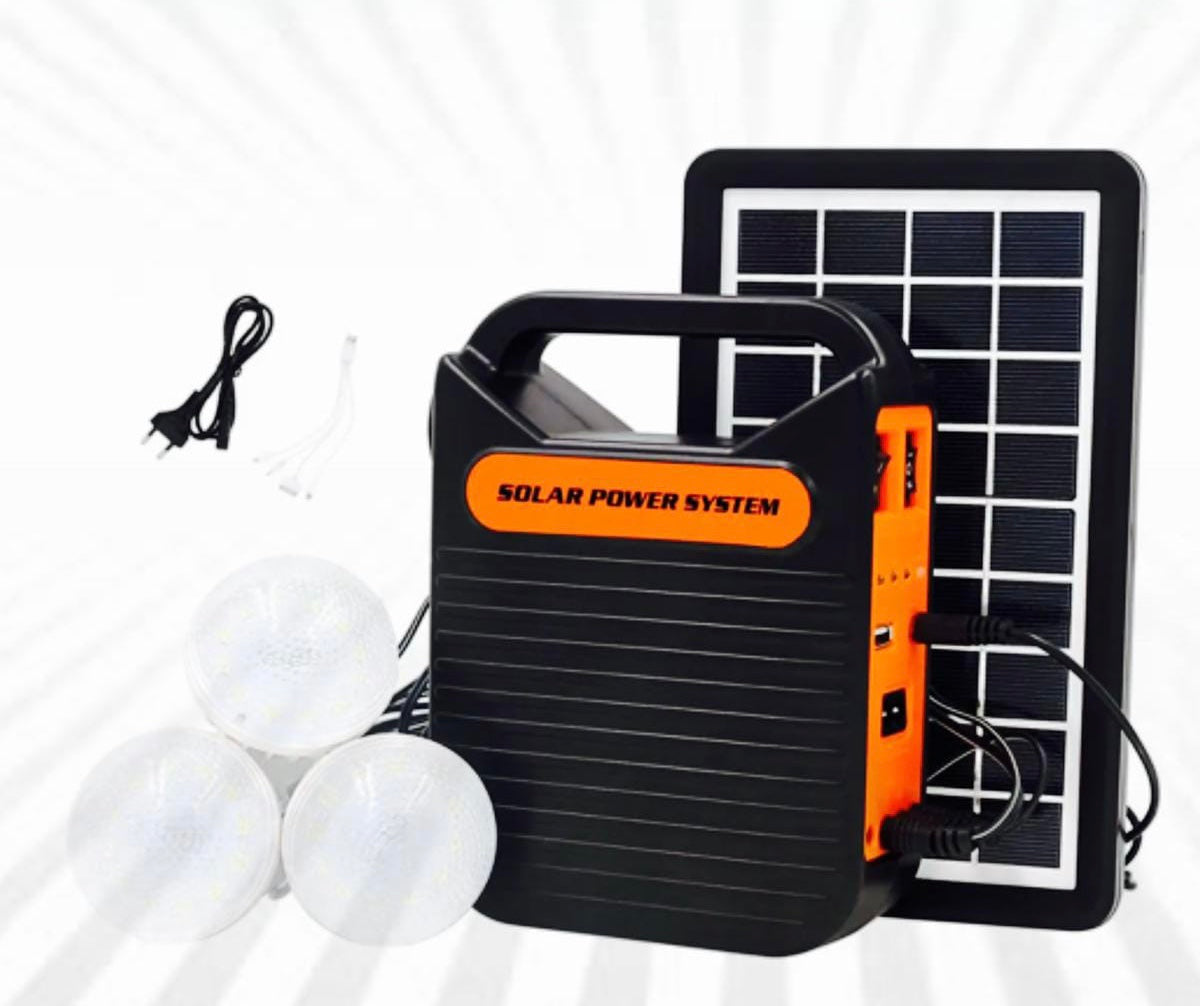 סוללת גיבוי עם מערכת תאורה ניידת דגם EP-393 עם טעינה סולארית, טעינה חשמלית רמקול רדיו ומטען נייד חיבור USB 5V