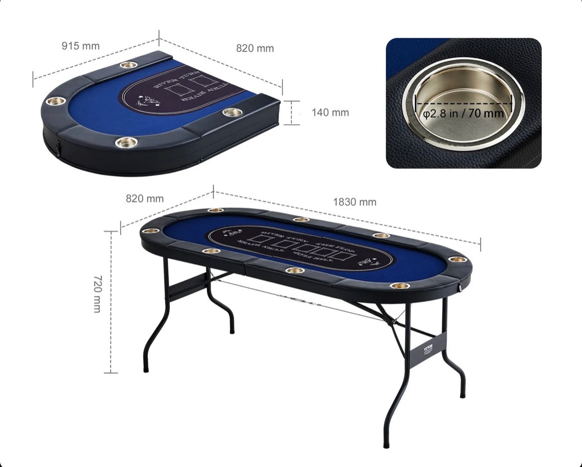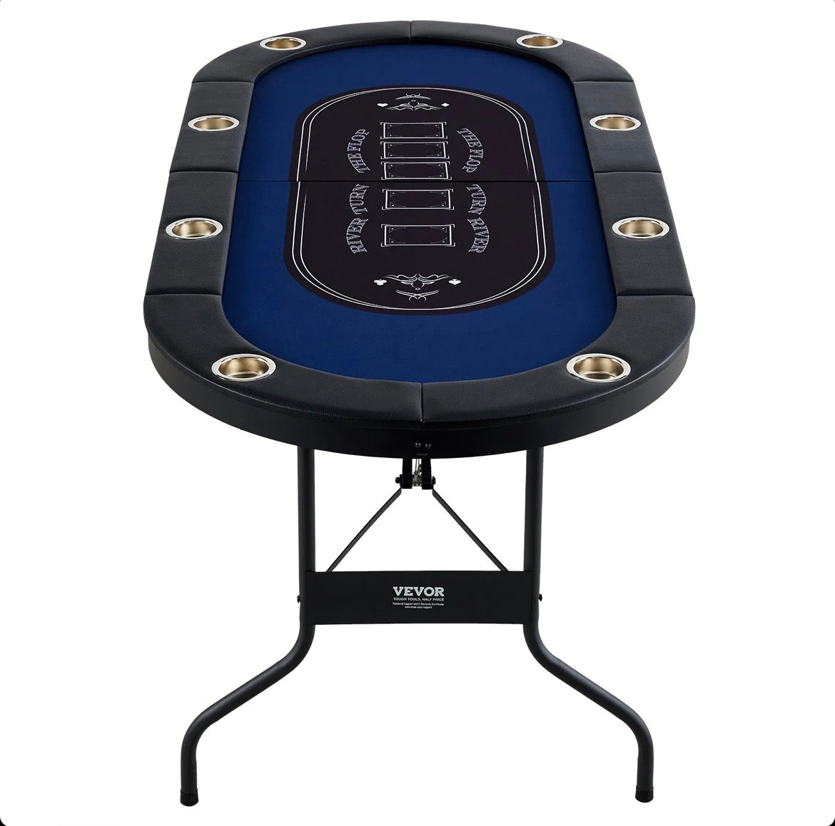 שולחן פוקר אליפטי ל 10\8 אנשים מתקפל   HOT HAND POKER בצבע כחול שחור