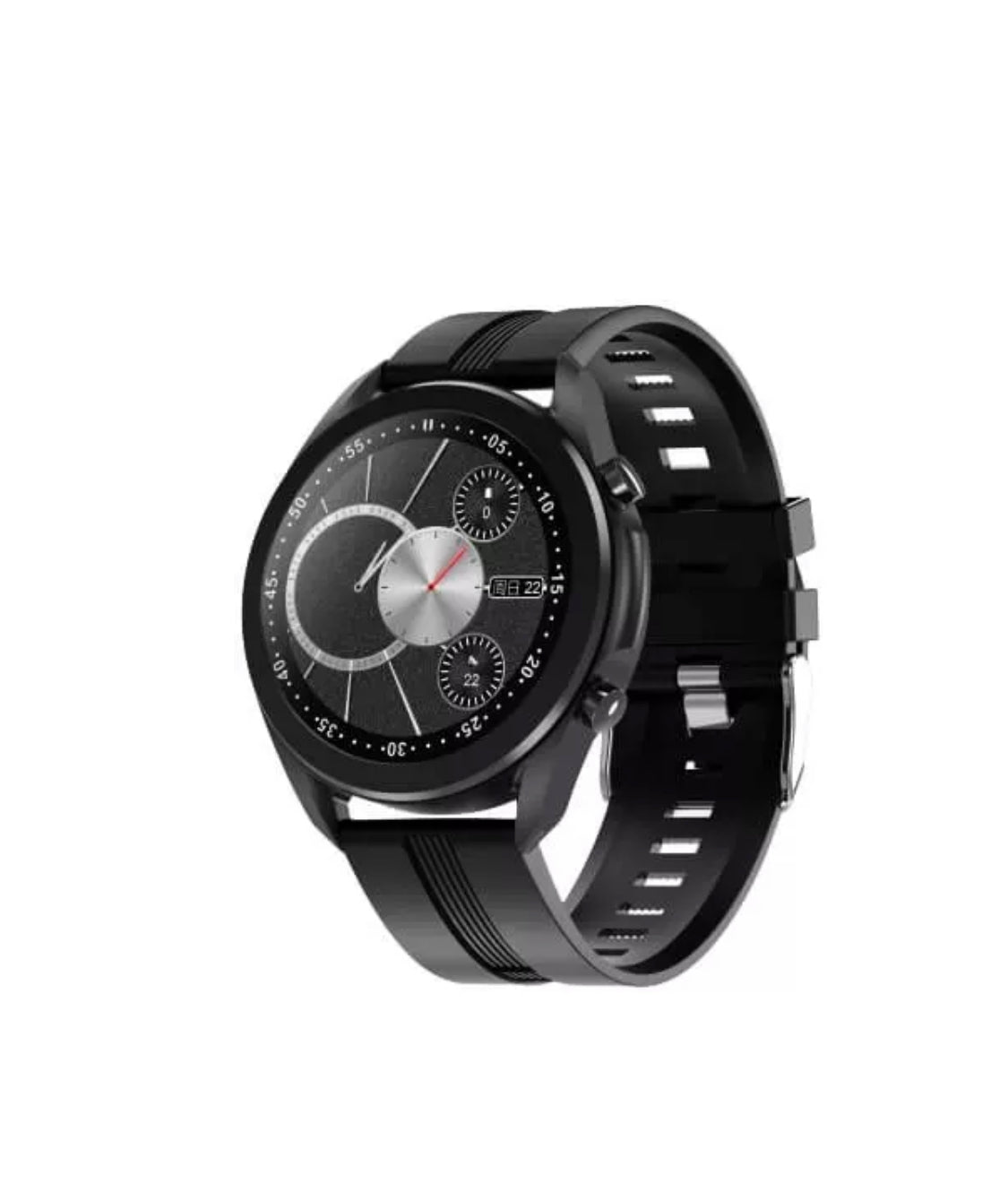 שעון חכם תומך עברית עם מסגרת שחורה ורצועת סיליקון שחורה